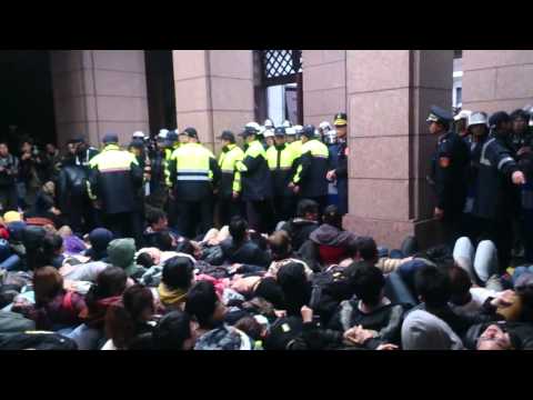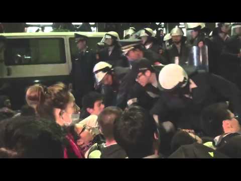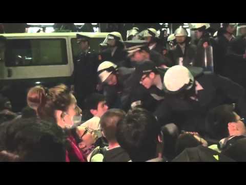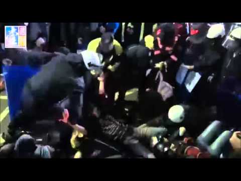 0324行政院後門 鎮暴警察粗暴對付非武力抗爭群眾(1分38秒開始,3分30秒時被夾進去)