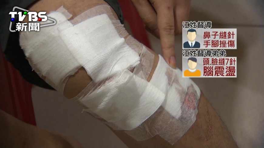 除了鼻子、手腳都多處擦傷,弟弟頭部臉部縫了7針,還有腦震盪,曾姓友人最嚴重,後