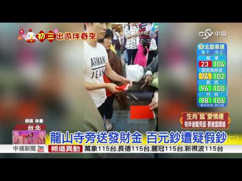 龍山寺旁送發財金 百元鈔遭疑假鈔│中視新聞 20170130 - YouTube