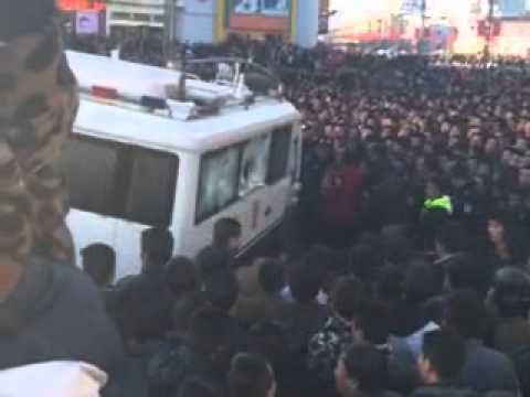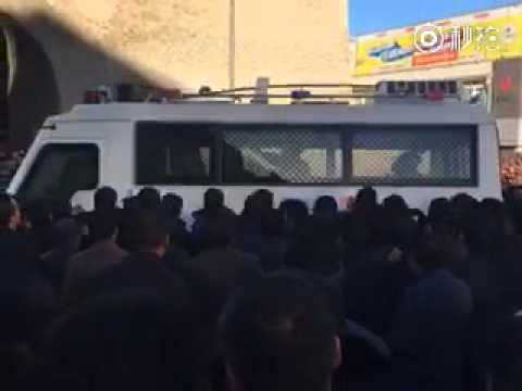 警察,因為武警先打了群眾,群眾開始反擊,雙方爆發激烈衝突,現場十分混亂。一輛武
