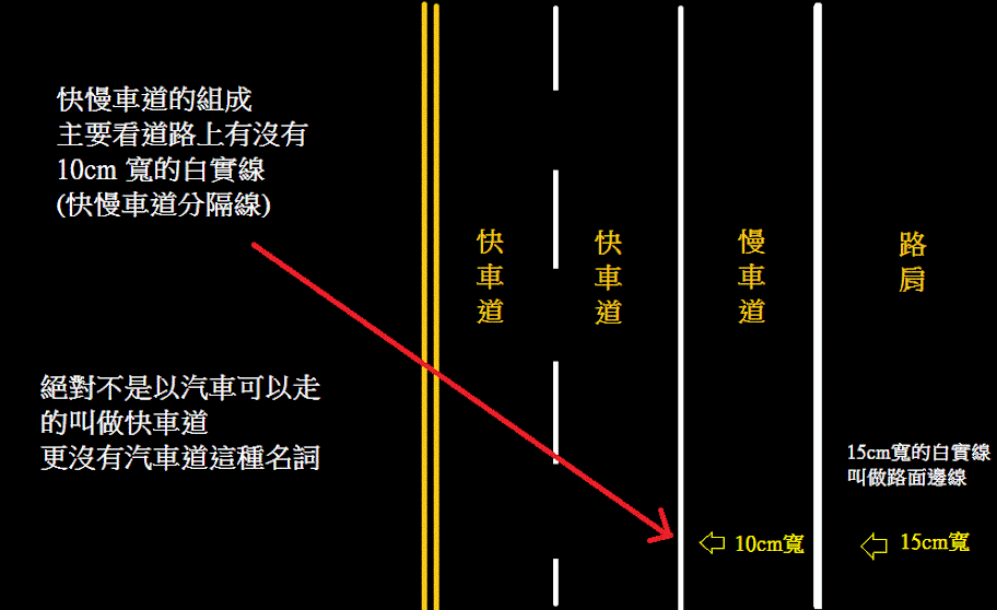 依據道路設計原則,左方是快車道、右方是慢車道