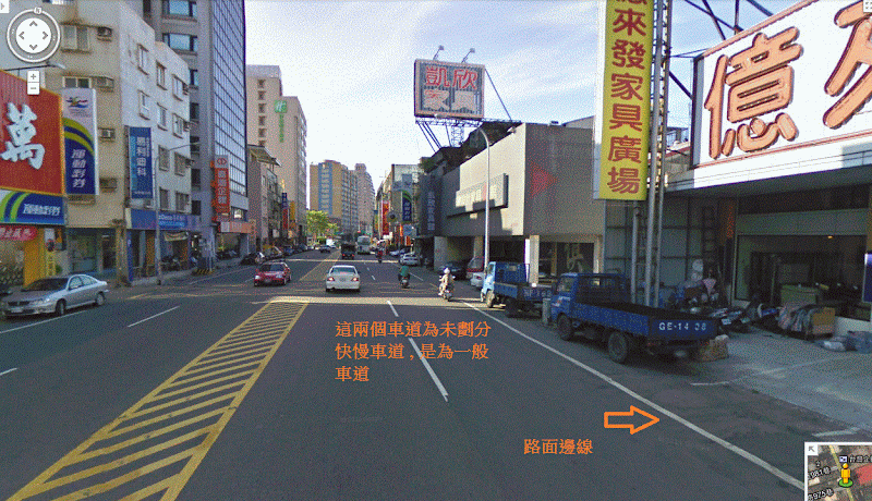 右側死角大且臨停、攤販、併排...等等較多