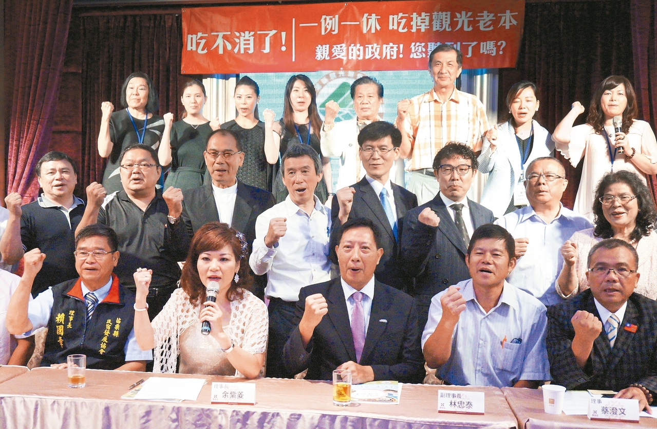 陸客銳減、一例一休新制加上公教年金改革定案,讓原已雪上加霜的觀光業更受重傷;台