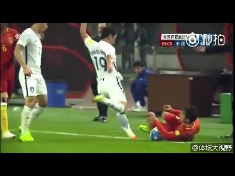 世界杯亚洲区预选赛3月23日中国VS韩国(1:0) 韩国队成员黄喜灿故意踢中国队员尹鸿博 - YouTube World Cup Asian qualifier March 23 China VS South Korea (1: 0) Korean team member Huang Xican deliberately kicked Chinese player Yin Hongbo .