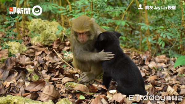 ▲Jay Lin曾拍攝到流浪小黑狗跟著獼猴群活動。(圖/即新聞/Jay Lin提供)