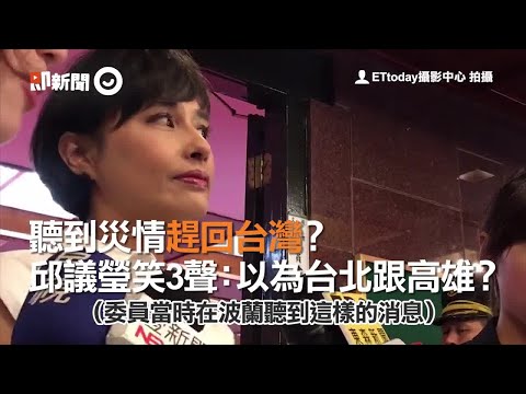 823水災,蔡政府救災弊病一籮筐,昔日88風災譙時任行政院秘書長薛香川「吃大餐」的民進黨立委邱議瑩,水災期間隨團出訪波蘭,被批評「標準不一」。今(3日)清晨邱議瑩回台,被問及水災期間是否想過從台灣回到波蘭,邱議瑩笑回「你們以為是台北跟高雄嗎?」,此話一出又惹怒網友了。