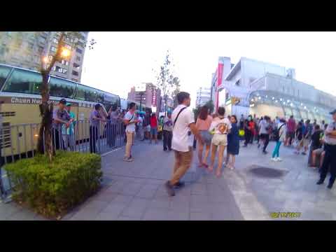 再來是走向小巨蛋捷運出口方向,有些反年改和愛國同心會人士坐在右邊,再喊蔡英文下