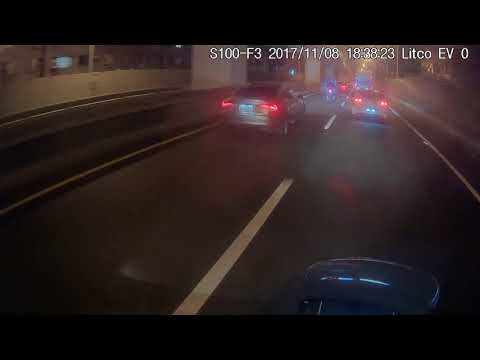 先是拍到一台自小客車變換車道未注意後方重機騎士>>變換車道未保持安全距離