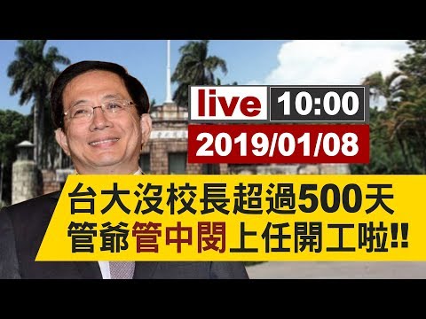 【完整公開】台大沒校長 超過500天 管爺 管中閔 上任開工啦!! - YouTube 2019.01.08 台大上午10點,在台大校總區行政大樓第一會議室舉行校長交接典禮,由教育部常務次長林騰蛟擔任監交人,代理校長郭大維交接給去年1月5日選出的管中閔。 預計直播時間09:50