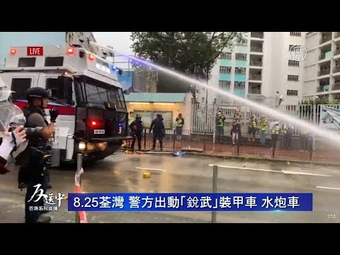 【直播中】8.25 荃灣 警方出動「銳武」裝甲車 水炮車 - YouTube