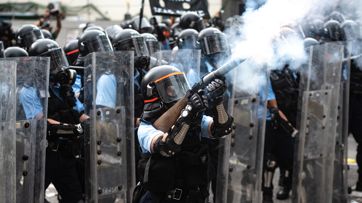 警察狂射催淚彈清場。防暴警察還一度推進到牛頭角下村居民區,之後,又在黃大仙釋放