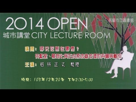 20141220高雄市立圖書館城市講堂—若林正丈「那只花瓶在哪裡?-林獻堂、蔡培火與矢內原忠雄苦澀的再會與離別 - YouTube 本館針對城市講堂部分講師授權場次,進行實況錄影,歡迎市民朋友, 不管是錯過的,或是想再次回味精彩實況的,點選此即可收看。 2014年12月20日 講師:若林正丈 講題:那只花瓶在哪裡?--林獻堂、蔡培火與矢內原忠雄苦澀的再會與離別 本次講題為作者近年來從政治學研究「回歸」歷史研究的力作之一,與〈葉榮鐘的「述史」之...