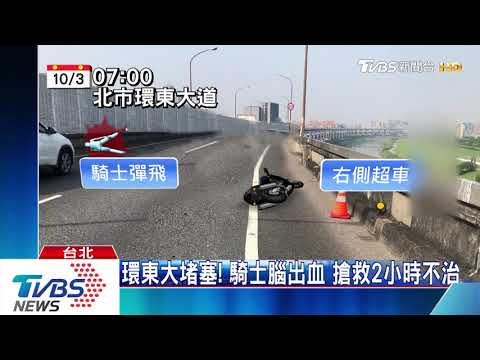 台北市環東大道,發生黃牌重機死亡車禍意外!一名姚姓騎士疑似從右側超車,卻因為不明原因失控,往內衝撞上內側護欄,整台車又往外彈飛再撞外側護欄,騎士送醫之後宣告不治,因為是上班尖峰時段,也造成高架道路嚴重堵塞。 ...