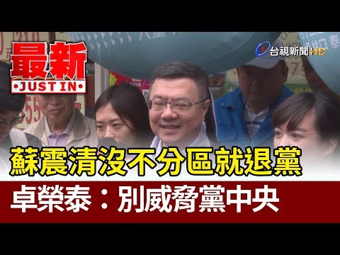 蘇震清沒不分區就退黨 卓榮泰:別威脅黨中央【最新快訊】 - YouTube #卓榮泰 #黨中央 #不分區 #蘇震清 2019.10.18【最新快訊】週三民進黨中執會,原定討論成立不分區立委提名委員會名單,最後會議沒開成,傳出立法院長蘇嘉全是為了姪子蘇震清不分區立委一席,發動杯葛中執會。儘管蘇震清否認傳言,但強調黨主席卓榮泰曾經承諾要將他列入不分區安全名單,如果不信守承諾他一定會出來選。今...