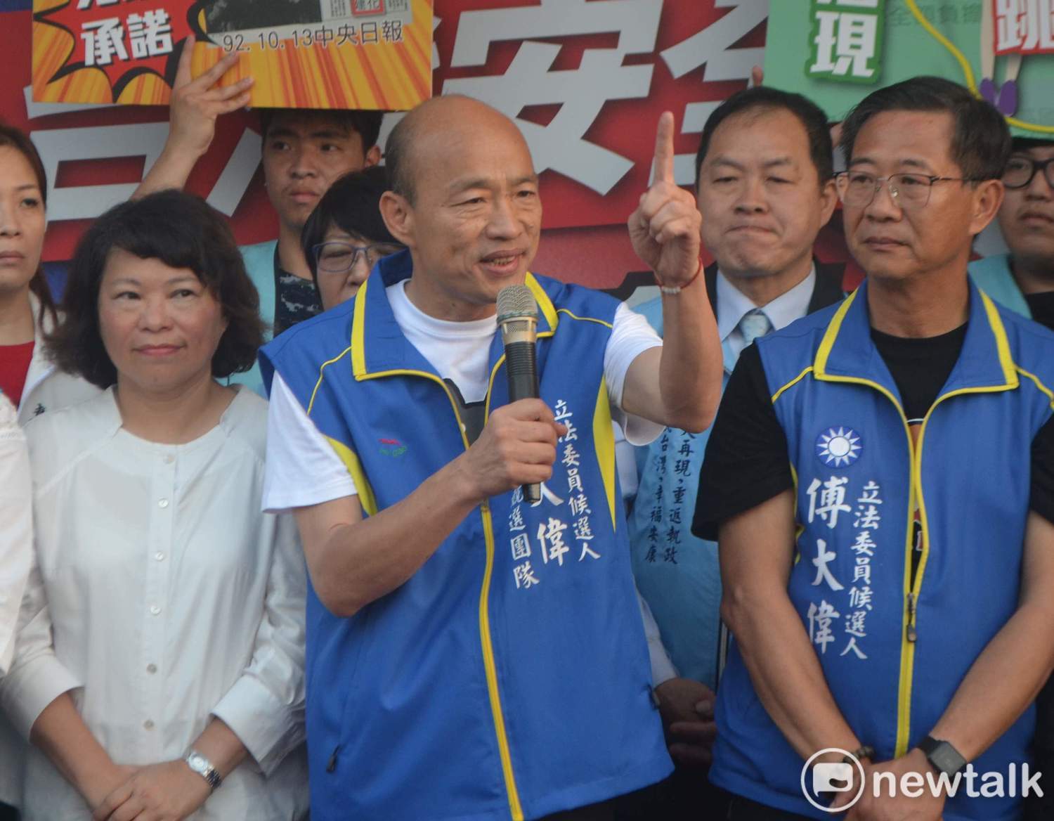 韓國瑜24日晚間在嘉義造勢,怒批黑韓產業鏈已經變成國際企業。 圖:蔡坤龍/攝(資