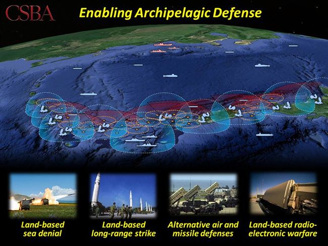 archipelagic defense)的概念,主張第一島鏈國家部署水雷、防空及攻船飛彈,可以封
