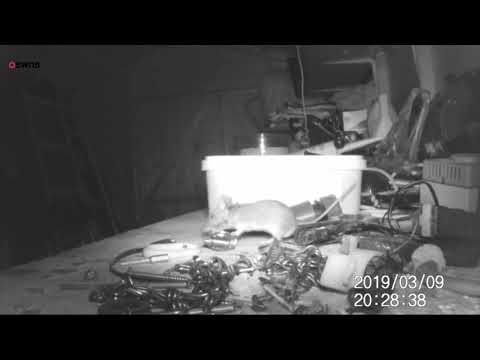 A night vision camera captures the rodent "stockpiling" screws and chains in a box of nuts. ...