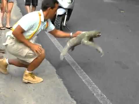 從牠的兩邊腋下抱起,並用比樹懶快數十倍的速度橫越馬路,走向道路旁的草地,