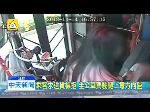 20150115中天新聞 過站下車被拒 女乘客搶抓方向盤 - YouTube