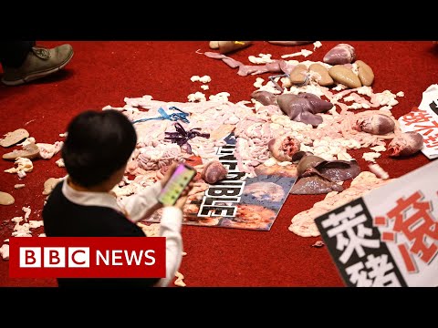 BBC News - Taiwan lawmakers throw pig guts and punches
