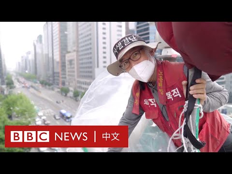 定爬上南韓三星總部附近一座高約 25公尺的監視器塔,發起新一波對三星集團的抗議。