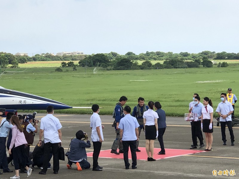 蔡英文表示,今天在這裡,剛由路志元和管延年兩位優秀試飛官所駕駛,編號11001的新