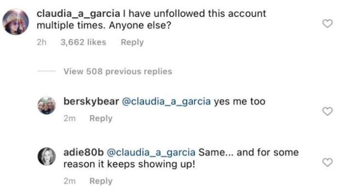 許多Instagram的使用者發帖抱怨說,即使自己一再取消關注、甚至嘗試阻止該賬戶,但