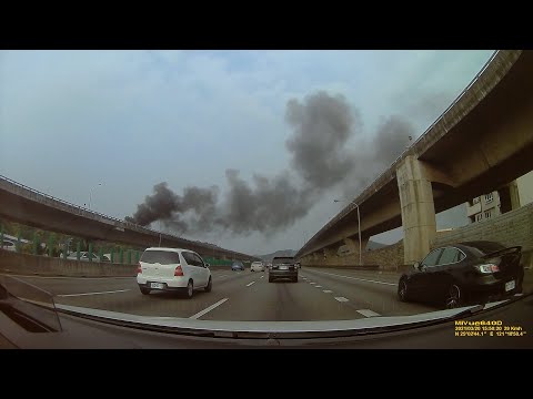 開車在五楊高架上突然引擎冒煙,急忙停在路邊,沒多久火舌就冒了出來,火勢猛烈吞噬