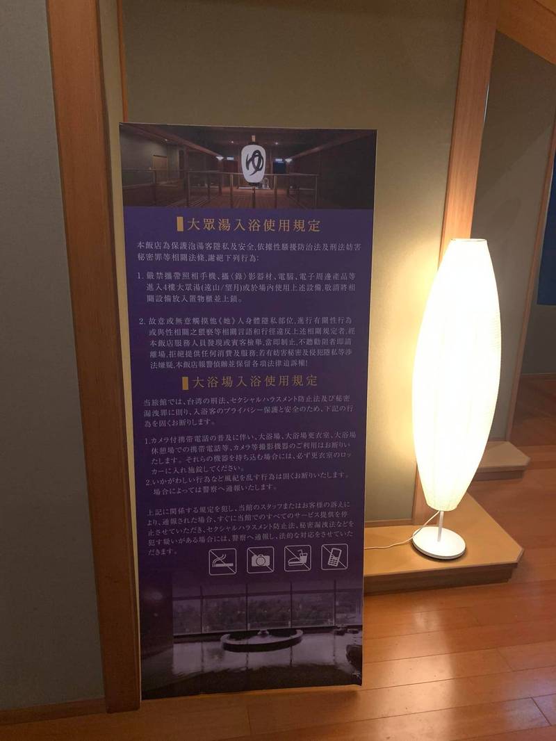 人員還說對方是要拍中庭的燈籠;她當時剛泡完溫泉只穿一件浴袍,被蹲在門口的男子驚