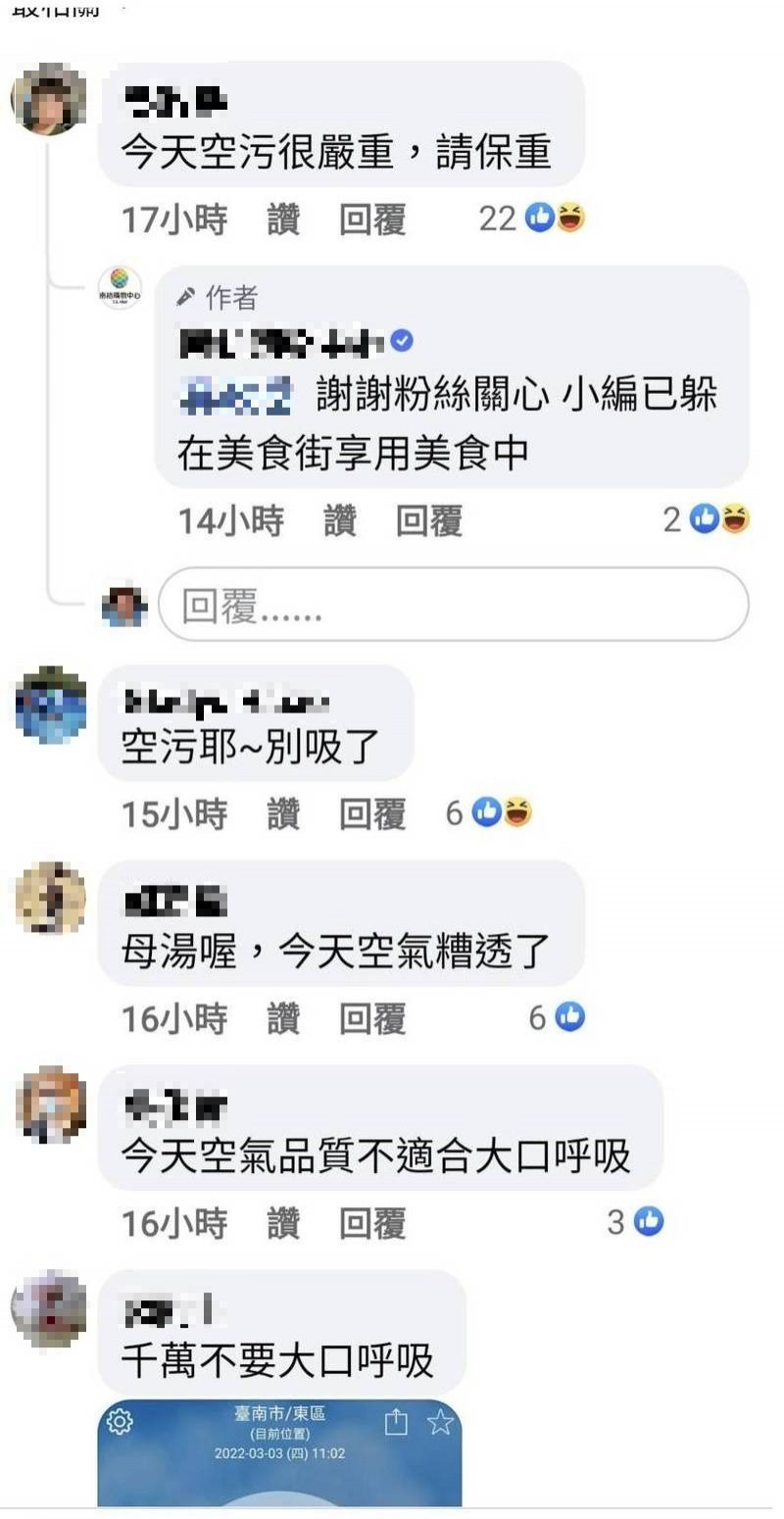 照片,告訴消費者利用停電到戶外呼吸新鮮空氣,沒想到消費者卻歪樓稱,當天有空汙警