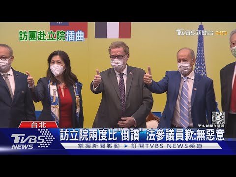法國參議院外交暨國防委員會副主席、友台小組副主席葛里歐(Joël Guerriau)率團訪台,今(10日)到立法院參訪,一行人在議場大門外合影時,訪團成員、法國財政委員會副主席艾伯雷(Vincent Eblé)卻兩度比「倒讚」。對此,艾伯雷下午在記者會回應,他比這個手勢沒有惡意,若有不好的觀感他表示 ...