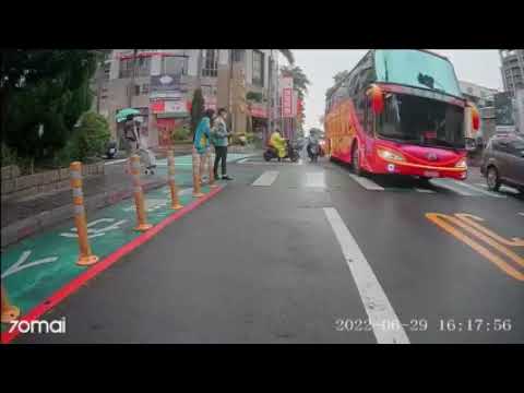 桃園1名女高中生昨(29)在過馬路時急著闖紅燈到對向路邊,左右看了一眼後就衝出路邊,隨即遭1輛迎面駛來的遊覽車差點撞上,她隨即返回路邊,遊覽車也停在路中,司機疑似被嚇得不輕;影片曝光網友怒批「眼睛有問題」 ...