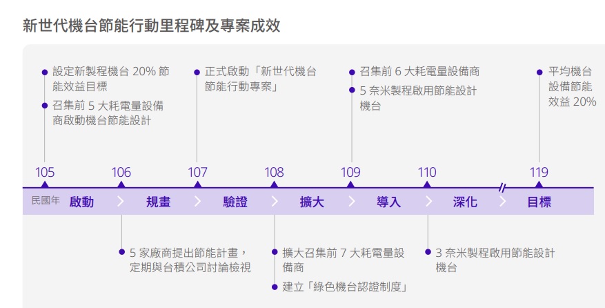 點與創新思維。針對耗電量前六大設備商,台積公司深入參與先進機台模組設計的節能理