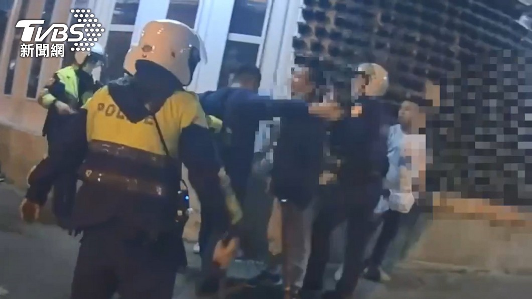 聚集,過程中放炮慶祝,警方接獲檢舉到場勸阻,結果兩名男子突然衝出人群,和員警發