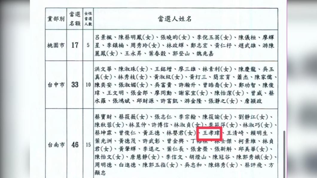 議王孝瑋的背景,沒想到卻被發現王孝瑋竟然是2018年「民進黨全國黨代表」。