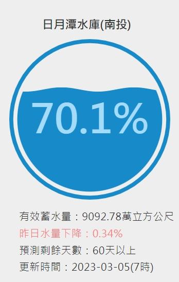 截至今(5)日上午7點,根據台灣水庫即時水情資訊,南投日月潭水庫的有效蓄水量為