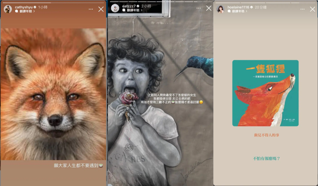 ,荳荳更貼《一隻狐狸》繪本封面直言「做見不得人的事,不怕有報應嗎?」