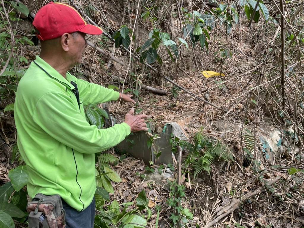 見埋在土堆中的水源頭,透過管線引到水塔中,梁先生提及,這塊區域重畫前都是山間小