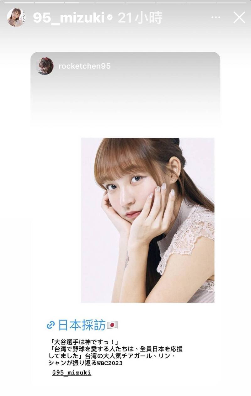 是爆紅的台灣啦啦隊女孩 ,她也在IG轉發部分訪問內容,她說大谷翔平根本是神,在台