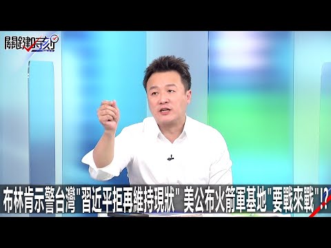 對台「戰略清晰」的立場。他還指出,台灣要密切觀察與中國大陸經濟關係規模,哪些產