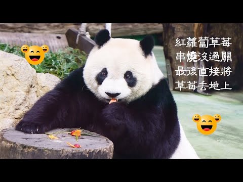 台北市立動物園幫圓仔準備了紅蘿蔔草莓串燒喔