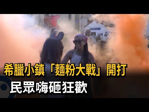 希臘小鎮「麵粉大戰」開打 民眾嗨砸狂歡