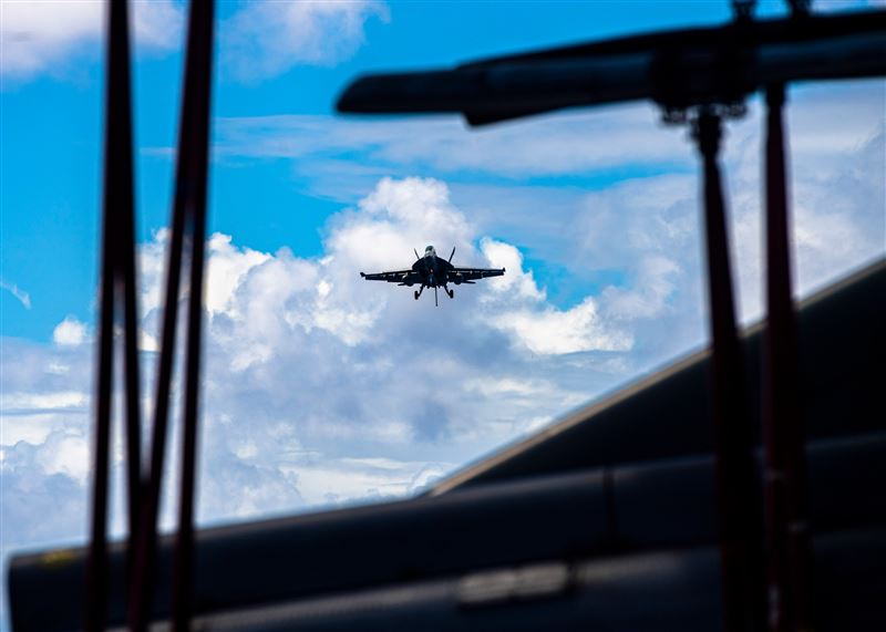 B.在台灣周邊海域,美軍兩個航艦打擊群與日本、法國、加拿大海軍艦艇進行聯合演習。