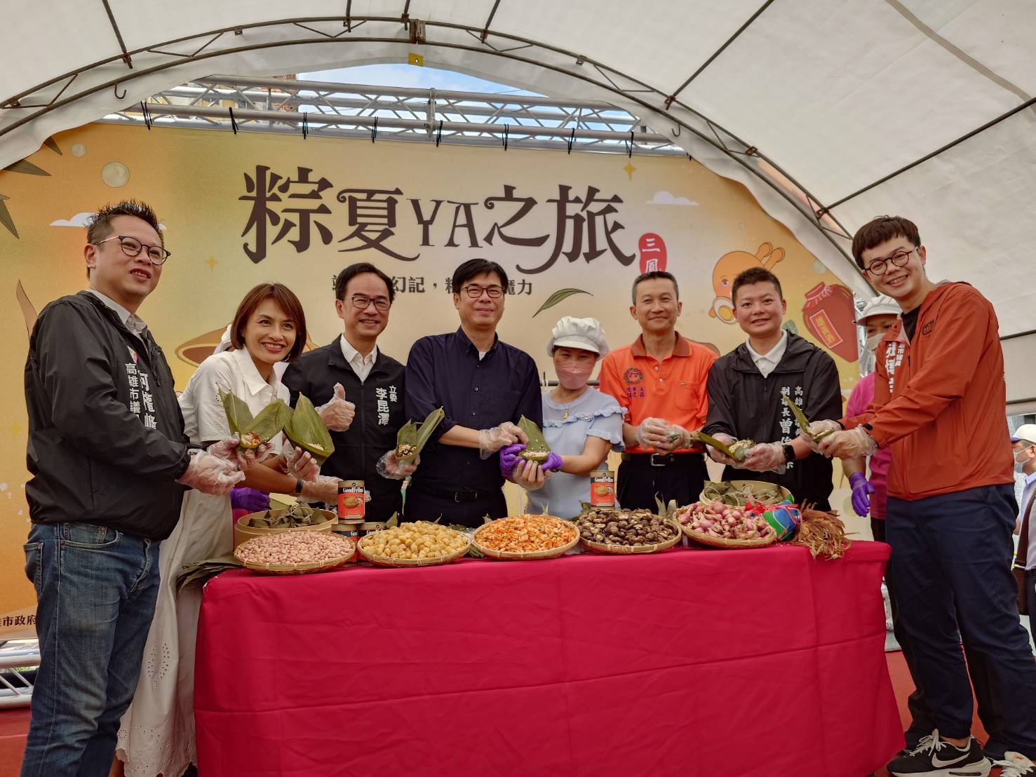分明。10陳其邁10日出席高雄市三鳳中街所辦「粽夏YA之旅」包粽活動,隔空問蔣萬安「
