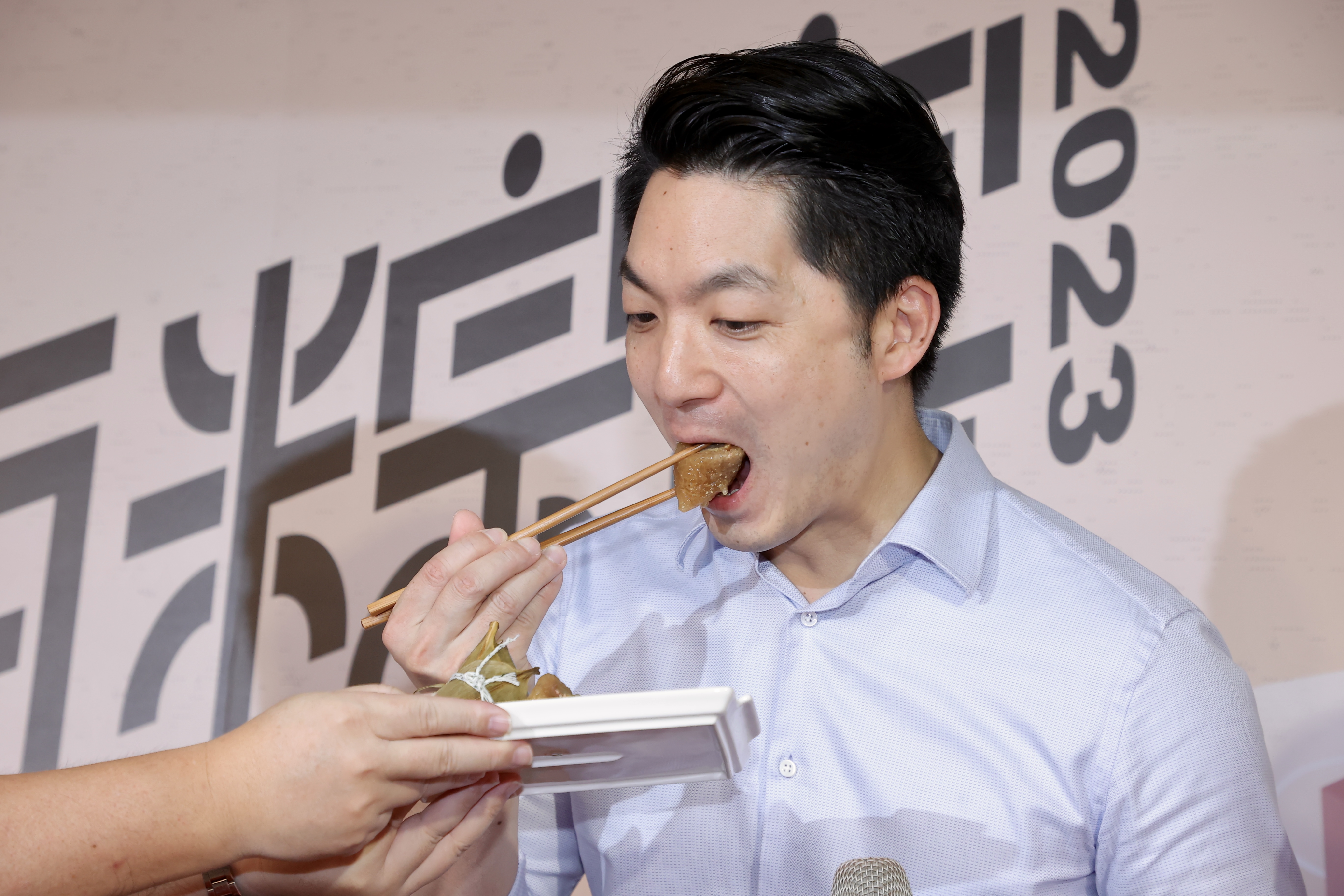 蔣萬安8日參加台北市南門中繼市場「百粽宴」 時說,他非常喜歡北部粽,因為口感粒粒
