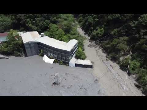 多處土石流,受災情況嚴重,有飯店地基幾乎都掏空,看似搖搖欲墜,流經溫泉區塔羅灣