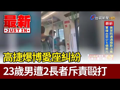 案情大逆轉!高雄捷運車廂昨(28)日下午發生一起衝突,一名23歲男子疑似被長者怒罵要求讓博愛座,雙方大打出手,2名長者甚至「徒手扯頭撞窗」。而捷運警察隊原本澄清男子「沒有攻擊行為」只是情緒失控,將釐清是否把人依恐嚇罪送辦,但同車乘客將影片曝光,直接打臉警方,除了跟說明內容平行時空,還讓動手打人的2位 ...