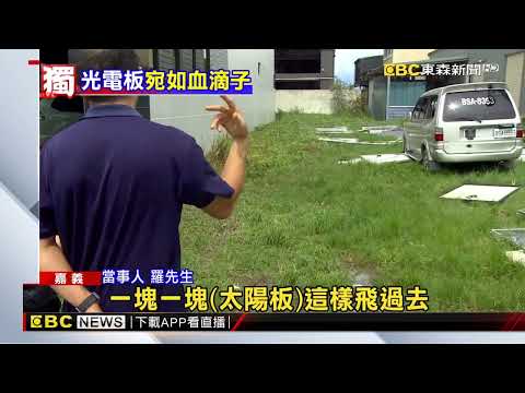 吹得歪七扭八,許多光電板甚至被吹越產業道路,漂到其他滯洪池。當地民眾表示,這些