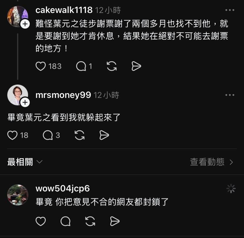 推 : 葉元之應該送他匾額 惠我良多552F 101.8.90.116 台灣 10/03 09:56