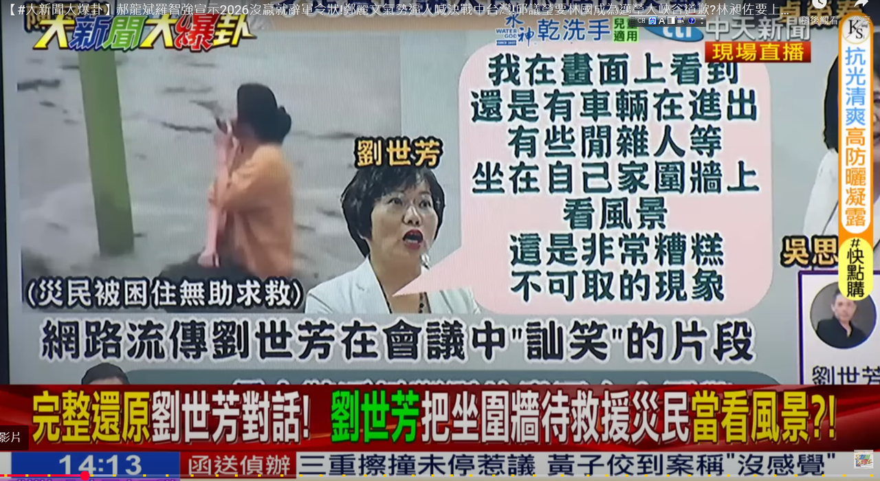 糕的、不可取的現象!馬千惠指出,網友發現,劉世芳所說的畫面,其實根本是災民被困